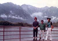 肩の小屋より約40分乗鞍での最高峰剣が峰3036mに着く山頂は360度の展望が楽しめる雲海が広がり素晴らしい眺めになる。雲の上に頭を出した山が2〜3有る又2日前に登った槍ヶ岳も雲間より時折姿を見せる3000m級の山でこれほど楽に登れる山は乗鞍以外にはないだろう、山頂で展望を十二分に味わって下山する肩の小屋まで戻り五の池を回って不動岳と里見岳の間を通って不消の池に出てテントの有る鶴が池に戻る。 テントをたたみ出発の準備をする昨日登ってきた道を引き返すのだ。登りは時間がかかったが下りはマイペースで2時間もかからず前川度に着いてしまう、松本城に入る道を探して松本市街をぐるぐると回ってしまいやっと松本城に着く。T氏と二人で松本城に寄って見学してくる。こじんまりした綺麗なお城で内部の階段は段差が大きく登り降りが大変だった早足で一回りしてくる。 松本より私の友人が居る信州新町に向かう松本より1時間30分今日は此処で泊めてもらう事になる。久し振りに風呂に入れる。夕食は信州新町名物のジンギスカン料理だ、腹も空いていたので、とても美味しく食べられる、更に今日は布団に寝られるのだ、昨日の分まで寝る事にしたいが、明日は黒四ダムに行って来るのであまりゆっくり寝ていられない。9月3日朝7時30分出発する大町まで約一時間大町より扇沢まで約30分天気は曇りで時折雨が降ってくる。扇沢よりトロリーバスでダムサイトに行き徒歩でダムに下りる、あいにくの雨模様でダムからの展望は悪く直ぐに引き返す新町に12時に戻る友人のM氏にお礼を言って帰ることにする。長野に出て志賀高原を回って帰る予定でいたが長野より18号線を小諸まで行き韮崎に出て20号線で帰ることになる 相変わらず雨が降ったり止んだりの天候だ。八ヶ岳の山麓を走っている頃に日が暮れて夜になってしまう。韮崎辺りに来た時に雨が激しく降ってきた甲府を過ぎ相模湖に着いた時はホッとしたT氏を横浜まで送って来たので帰宅したのは12時を少々過ぎていた。 全走行距離 900km ガソリン 60L 有料道路 1640円 トロリーバス 2700円 殺生ヒュッテ3人2泊 7090円 徳沢テント代 600円 一人当たり約6000円 。