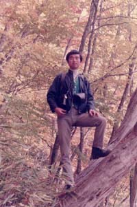 この三峰神社は壮大な社があり関東一円より参詣者が絶えない。暗くなっているので懐中電灯を出して歩く暫らくは車の通れるような道が続いたが森の中に入って登山道となる三峰神社より2時間ほど歩くと秩父宮のレリーフのある霧藻が峰に着く。山小屋があり小屋の前のベンチで休憩とする。空には星が輝いているので天候は心配ない。夜中なので山小屋の灯りも消えているので、静かに行動する、再び雲取山に向けて歩き始める、 途中でお茶を飲んだりしてゆっくりと歩く、雲取山でご来光を仰げる様時間調整をする。途中で枯葉を集めて枯葉にもぐり仮眠したりして行く。大ダワを過ぎ雲取山荘に到着すると空がいくらか明るくなって来る。山小屋に泊まっている人達も日の出を見る為小屋より出てくる。雲取山山頂まで急な登りとなり、空が明るくなるに連れて黒雲がどんどん張り出して来て雨が降りそうな天気となって来る。 雲取山荘より約40分雲取山頂2018mに着く山頂でカメラを構えて日の出を待っていると、風が強くなり黒くもが張り出してきて雨が降ってくる。残念!!もう数分で日の出を見ることが出来たのに、山頂でカメラを構えていた登山者達と直ぐ近くの非難小屋に駆け込む。山の天気は変り易いとよく言われているが、これほど天気が一転して雨になるのを体験して納得する。非難小屋でインスタントラーメンを作って朝食にする他に6人ほどの登山者も同様に朝食を取っている。 寒くて体が冷えていたので温かいラーメンはとても美味しくて体も温まってくる。朝食後雨はまだ降っていて止みそうもないので笠をさして三条の湯に向かう(帰りの下山路)