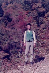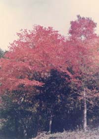 雲取山頂より約一時間ほど降った辺りで天気がまた一転してきて太陽が出てきて青空になる、よく変る天気だ山の天候は!!丁度この辺りは紅葉が見事で雨上がりで太陽に反射して一段と美しく見える。足取りも自然に軽くなってきて山頂より約2時間で三条の湯に到着する此処で直ぐ下にある河原で休憩で昼食にする 今度はインスタントのうどんを作って食べたが気温も上がってきて汗をかく様になっていたので、暖かいうどんはあまり美味しいと感じなかった。のんびりと昼食を済ませてから再び下山道を辿る。40分ほどで林道に出る車が置いてあり釣りにでも来ているらしい。林道を暫らく歩いていると後ろより車が来て載せていってもらうバス停のある国道で下ろしてもらい、お礼を言って別れる。「お祭」と言う珍しいバス停だ此処から奥多摩駅に出て電車で帰る。