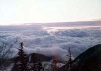 峠に2時に到着、峠の夜叉神山荘に宿泊予約をしてあったので夜叉神山荘の管理人に話して、取りやめにする、まだ時間が有るので一時間ほど登った所の夜叉神峠小屋に泊まることにする、天気が急速に回復して来ている遠くに秩父連山の山並が見えてくる山荘の前から唐松と広葉樹林の混ざった急な道をジグザグに登り始める 登るにつれて雪が目に入ってくる、 30分程歩くと丁度よい休憩場所があり小休止とする頬を吹きぬける風が冷たくてとても気持ちが良いT氏がザックの中からみかんを取り出してひとつずつ食べる喉も渇いていたのでいつもより美味しく思えた。体がだんだん冷えてきて寒くなる、あまり時間を取る事は出来ないので直ぐに歩き始める 登るにつれて雪が多くなる、陽もだいぶ低くなってきた、直ぐ横の山が櫛型山らしい丁度和櫛に似ているので名前が櫛型山とつけられたと以前ガイドブックに記されていた事を思い出す。 櫛形山の後方に富士山の姿が見えてきた。途中に水場の標識はあるので小休止を兼ねて水汲みに行きポリタンクに水を汲んでくる10分ほどして再び歩き始める体もだいぶ疲れてきている、足取りが重くなっているのが感じられるるフランスパンを少しずつかじりながら雪の積もった登山道を重い足取りで歩いてゆく、暫く登ると急に目の前が開けてくる正面に待望の南アルプスの主峰(主脈)が白い巨峰を連ねた雄大な山波が見えてきた 思わず歓声を出してしまう カメラを向けてシャッターを切る、直ぐ上に山小屋があるので今日の宿泊予約をしてザックを置いてカメラだけ持って外にでる大自然の美しさを体全体で感じ取り何とも言い表せない気持ちだ この瞬間の感激は一生忘れる事はないだろう、またこの感激は汗を流して山に登ってこそ味わえる物だと思った 陽が白根三山の後方に沈んでゆき 空が茜色に染まってゆく 富士山も赤く染まって再び感激する、夜叉神峠の素晴らしさを十二分に味わう事が出来た シャッターも十数回切った、 陽が沈み当り一面暗くなって寒くなったが小屋に入る気にはなれなかった。約30人程の登山者が我々と同様に外に出ている、最後のほうになって山小屋に戻ることにする、明日の予定があるので、何時までも外にいられない、小屋に入って直ぐに夕食の支度をしていると山小屋の主人が一升瓶を持ってきて宿泊者全員にお酒を振舞ってくれる 今日は大晦日なので特別に分けてくれたのだ 私たちも頂く事にする寒かったのでお腹の中より温まってくる 食事を済ませてから再び外にでてみるとグーンと冷え込んでくる、身震いがする早々に小屋に戻り明日の準備をして寝る事にする 少々外の風邪が隙間より吹き込むので寒かったが良く眠る事が出来た。 1月1日 陽の出を見るため早く起きる やはり外は寒くて吐く息が白くなる、陽の出は小屋の裏手の方角から出てくる、空に丁度ねずみの形をした雲があり、今年は子年、私の干支でもある...今年は何か縁起の良い年に成りそうだ...そんな気持ちに成った 今日は昨日とは打って変って朝から好天気 陽が出るまで約一時間外にいたので体が冷えてしまった 写真も多く写したし峠の朝も十二分に味わったので鳳凰三山を目指す 山小屋の前の道を進むと直ぐに登りとなり針葉樹林帯の中の道となる、歩き初めなので直ぐに汗が出る30分程のところで小休止、天気は良好ベストコンデションだ 夜叉神峠小屋より約一時間大崖頭山を過ぎて杖立て峠に到着