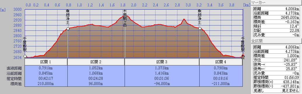 直下には千丈敷カールの端にロープウエイの駅が小さく見える20分程山頂で休憩と景色を堪能する