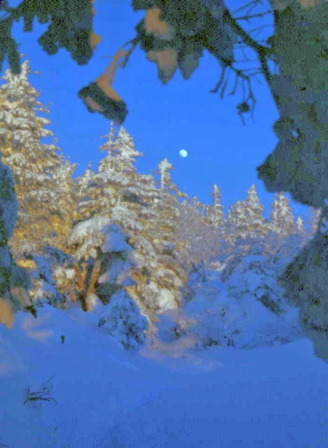 高尾⇒茅野⇒渋の湯→黒百合ヒュッテ(泊)→中山→天狗岳→黒百合ヒュッテ→中山峠→シラビソ小屋(泊)→稲子湯→新開⇒松原湖⇒小淵沢⇒八王子 高尾発9時37分の列車で茅野に向かうメンバーはいつもの3人車内は空いているので楽に座って行く事が出来る12時40分茅野駅に到着する駅前でミカンを買ってタクシーで渋の湯に向かう約40分で渋の湯に着く60cm程雪が積もっている。予定では渋の湯に泊まる事にしていたのだが早く着いたので黒百合ヒュッテまで歩く事にする。 川で水を汲み登山準備をする、約2時間の登山で天気は良いが風が少々強いので寒さが応える。雪道を淡々と登って行く午後5時陽が落ちると同時に黒百合ヒュッテに到着する。荷物を降ろし直ぐに夕食の準備をするインスタントのお赤飯とカップヌードルを作り暖かいうちに食べる 外気は氷点下20度で暖かい食べ物はとても美味しく又体も温まり元気が出る、食後お湯を沸かしてコーヒーを飲み一日の疲れを癒す。ちょいと外に出てみたがとても寒くて直ぐに小屋に戻る。暫らくストーブの廻りで談義していたが寝床に戻りシュラフに潜って午後9時頃まで談義の続き。