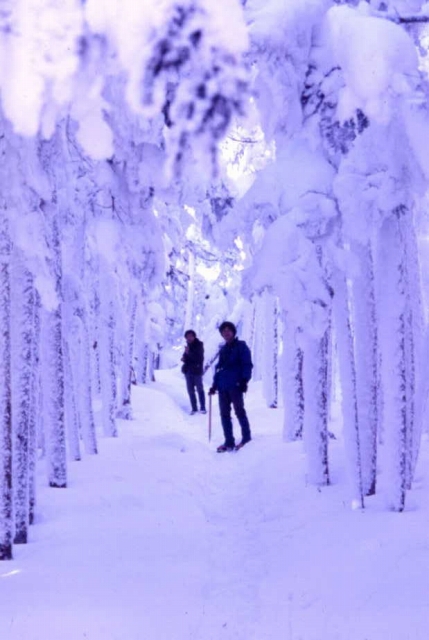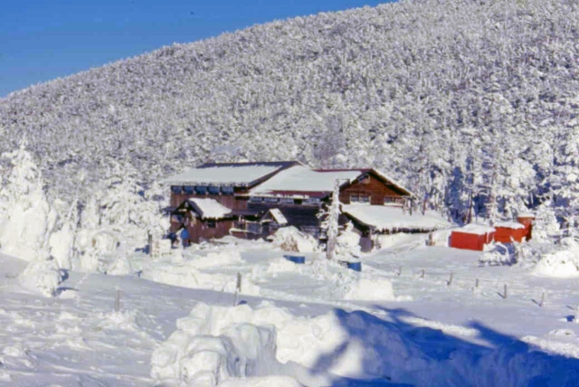 一旦黒百合ヒュッテに戻り昼食(缶詰のおしるこ)にするお餅を多く入れて腹ごしらえをする13時30分黒百合ヒュッテを出発再び中山峠に戻ってくると峠よりミドリ池方面に一人足跡が残っている急な斜面なのでF氏は峠より少々東よりの林の中を下る。歩いて降るのは難しいが尻スキーで下ったほうが安全なのと早いので尻スキーで難所を一期に300m程3人で降ってしまう。 とっても爽快な気分だった。急斜面を尻スキーで越して再び歩き始めると直ぐに2名の登山者が登って来る「峠は近いですか?」との問いに「あと200m程ですよ」と言葉を交わす。積雪が1m程あるので足跡の無い所に足を入れるとたちまち越まで潜ってしまう。注意深く足に神経を集中させての歩行が続く、途中何度となく雪の中に足全体が潜ってしまう。とても歩きにくい登山となる。午後3時目的のミドリ池湖畔に建つシラビソ小屋に到着する。今日は此処で泊まりとなる小屋でお茶をご馳走になる。汗をかいて喉も渇ききっていたのでお茶のお代わりをする、休憩後夕食の支度を始める。残っている食料を全部ザックより取り出して一箇所に集める、さて!今夜は何を作るかと思案しても残っているのはインスタントラーメンとライスと少々の缶詰だ、結局ラーメンとご飯を小屋でお湯を貰って作る事になる。 昨日泊まった黒百合ヒュッテとは違って池の辺に有るので水が豊富に使用できる。さらに小屋で使用している暖房のストーブでお湯を沸かしているのでお湯も貰えるので夕食の支度が早くできる。今まで山小屋で炊事をして食事を作ったが今日ほど良く出来たのは初めてだ実際に食べても美味しく食べられる。以前南アルプスでトッテモ不味い食事を2日間も食べた時の事を想い出す。 食事後素早く後かたずけをしてから山小屋の本棚にあるアルバムを全て見る事が出来る。山小屋でこれほどまでにゆっくりとのんびり出来たのも初めての経験となる。登山者が我々3名とほかに2名と少ないので余計ゆっくり出来る。静かな時は早朝リスが来ると聞いたので明日を期待して床に入って休む。1月17日朝ゆっくり起きる7時丁度、山小屋の女主人に代わってストーブに火を付けるストーブに温まっていると昨日聞いていたリスが窓辺に餌を求めてやって来る、静かに窓からリスを眺めている、カメラを用意して何枚か写す、陽も高くなってきた。腹もあまり空いていないので山小屋の際にある雪に埋もれたキャンプ場を1廻りしてくる事にする。 踏み後がないので雪をかきラッセルしながら歩く昨日と同様に足が雪に埋もれて越まで浸かってしまう通常なら15分程度で回ってこられるコースだが1時間程かかって小屋に戻る。昼頃20名ほど小屋に登山者が来ると言うので急いで食事を済ませて下山準備に取り掛かっているとドカドカと大勢入ってきた、急いで荷物をまとめて外に出る小屋前で3人で記念撮影をして13時30分山小屋を後に雪道を下山する。 静かな山小屋での泊まりだったなーと思いながら振り返る。此処からは登山者が多いので踏み固められた登山道なので楽に下山できる途中登山者と多く行き交う、今日はきっと山小屋は賑やかな一日となる事だろうと再び山小屋の方を振り返る14時20分稲子湯に出る。この辺りまで来ると雪は殆ど無くなりアスファルトの道路が見える 振り返り八ヶ岳の(天狗岳)写真を何度も撮りながら新開部落まで降ると雪が無くなって来たのでスパッツを取り外し歩いていると後ろから車が来て海ノ口駅まで乗せてもらう。おかげで1台予定より早い列車に乗れる。何時もの様に小淵沢で乗り換えて帰路を辿る。 費用 行き電車 870円 タクシー1000円 黒百合ヒュッテ 1700円 シラビソ小屋 1700円 そば弁当 600円 みかん 300円 帰り電車 970円