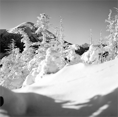 1月16日 天気は良好朝食のインスタントうどんを食べてから黒百合ヒュッテの直ぐ裏にある中山まで登って来る、展望が良い所はあまり無いので直ぐに小屋まで戻ってくる。今度はザックを一つ持って天狗岳を目指す写真を撮りながら2時間ほどかけて天狗岳山頂に到着する。山頂で暖かいお茶を飲もうとしてお湯を沸かそうとバーナーに火を付けたが気温が低い為バーナーの火力がとろとろしか出ない、 両手でバーナーのボンベを暖めたりお湯を少し作ってはお皿に入れてその上にボンベを置いたりしたがお湯が出来ず止める氷点下20度以下となっている天狗岳山頂ではボンベ式のバーナーではお湯が沸かない事が解る。下山路中山峠に向かって下る中山峠まで来ると道が十字路になっていて右下のミドリ池方面に降っている足跡が無い。