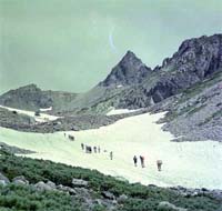 八王子⇒高尾⇒松本⇒上高地→岳沢ヒュッテ(泊)→前穂高→奥穂高→ジャンダルム→穂高山荘(泊)→涸沢岳→北穂高→キレット→南岳→天狗の原→肩の小屋(泊)→槍ヶ岳→飛騨乗越→槍沢→横尾→徳澤→明神→上高地⇒松本⇒八王子 7月25日朝一番の電車に乗って高尾駅に行き高尾発の鈍行で松本に向かう 松本から電車で新島々へ行く予定でいたが時間があるのでタクシーで上高地まで行く事にする 私たちは3人なので 上高地まで行く人を2人探す事にする 松本駅で上高地方面に行く人たちが集まっている所で F氏が2人探してきた 神戸から観光で上高地までゆくので 丁度良かった 早速5人でタクシーに乗り込み上高地に向かう 電車とバスを乗り継いで行く予定でいたが 5人でタクシーを利用したほうが時間的にも 金額も安く行けるので 良かった(1人当り 1400円) 上高地に予定より約一時間早く着いたので 河童橋のところで記念写真を撮り 丁度 お昼時なので5人で食事を一緒にする 13時05分神戸より来た2人と別れて