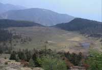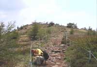 池の平駐車場→村界の丘→雷の丘→雲上の丘→こまくさ園→三方が峰→池の平湿原→駐車場 関越自動車道高坂PAで朝8時待ち合わせ2台の車で4人乗車して一路長野方面に向かう、藤岡JCで左に折れて横河SA休憩、長いトンネルの連続で、軽井沢を過ぎて東武湯の丸より池の平に向かう、湯の丸高原で朝食を取り、池の平林道を走り池の平湿原まで10分で到着。此処から湿原の周りの丘を周遊する。 始めに村界の丘→雷の丘→雲上の丘のピークを歩き電波塔の有るピークを過ぎると「こまくさ園」に出る。柵で保護されたコマクサ園の際を通り三方ヶ峰の斜面を湿原目指して降る。斜面には色々な高山植物がありイワカガミ、ショウジョウバカマ、エンレイソウ、ミヤマカタバミ、ヒメイチゲなど見られる。湿原を二分する木道を通って駐車場に戻る。