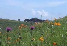 蝶々深山で昼食と、景色を十分満喫したので蝶々深山を後に物見石に向かう、足取りも軽く色々な花が咲く草原を気持ちよく進む、笹原を過ぎて目指す物見岩がが次第に大きく見えてきて坂道を一登りすると見晴らしのよい物見岩に到着。 振り返り見るとリフトで登って来た車山、正面には八島湿原が見える。物見岩を八島湿原に向かって降って行くと八島湿原の一角に鎌が池が有り付近には多くの花が咲いている特にベニバナシモツケソウが特に鮮やかな色をしていて目立っている。近くに「山小屋の灯」の歌詞が書かれた碑か建っている 鎌が池の近くには車道が有り近くにはキャンプ場も有る。鎌が池を通過して八島湿原の縁を半周しながら八島園地に向かう。八島湿原の縁は木道で策があり自然保護を取っている。八島園地より辿って来た方面を見ると遥か彼方に車山が見える。よくも歩いてきたものだ!!と我ながら感心する。 八島湿原の近くに停めてある車に乗り込み車山高原に戻る此処で再び2台の車が合流。今日一日素晴らしい天気で、ニッコウキスゲが丁度満開に咲いていて最高のハイキングが出来た。今回のコースは平坦なハイキング路でのんびり歩くのには相応しいコースだ、また来年来る事を心に誓って霧が峰を後に帰路を辿る。 |