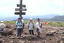 佐久(T山荘)⇒長久保⇒長門牧場⇒車山高原⇒車山山頂→夫婦岩→蝶々深山→物見岩→鎌が池→八島湿原→八島園地⇒車山高原 佐久のT山荘より2台の車で一路霧ケ峰高原に向かう浅科村を過ぎて望月のトンネルを抜けて茂田井より国道142号線を左折して白樺湖方面の標識に従って進む。途中右手に長門牧場の看板があり、案内に従って長門牧場に入って休憩とする。牧場には色々なお土産があり、また自家製のソフトクリームが美味しそうなので全員で試食する。 お土産と美味しいものを食べて満足した長門牧場を後に白樺湖方面に向かう。左手に蓼科牧場を眺めながら高原を行く、女神湖湖畔を通過して、カーブの連続を越して大きく開けた白樺湖湖畔に出る、白樺湖よりビーナスラインに入って八島湿原の近くに車を1台停めてから車山高原に戻ってリフトで車山に登る。 2本のリフトを乗り継ぎ車山山頂1925mに登る、山頂には大きな気象用レーダーがあり新しくするため工事中となっている。車山山頂の展望を楽しんでから霧が峰ハイキングコースに向かう。車山山頂からは急な降りで滑らないよう体を横向きにして慎重に降る。 夫婦岩まで約20分、降りも意外と疲れる。夫婦岩は路が十字路となっている所で、此処を左に向かう、此処からは高原ムードを満喫しながら長閑なハイクとなる。高原一体に丁度満開となったニッコウキスゲやその他多くの花が咲いている。青い空に白い雲、高原を吹き抜ける心地よいそよ風に浸りながら蝶々深山1836mに出る。 此処、蝶々深山で休憩とする。ザックを降ろして各人お昼の用意蝶々深山山頂は広く一面にニッコウキスゲが黄色いじゅうたんを敷いた様に咲いている。黄色いじゅうたんの上に越を降ろしている様だ、広い山頂にはハイカーが多く休憩している。長門牧場より買って来た自家製牛乳で乾杯!!とても美味しい、隣りのグループはビールで乾杯しているが、こちらは牛乳で乾杯!!。
