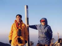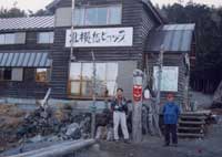北横岳山頂からは360度の展望がえられ夕日がアルプスに沈んでゆくと次第に空が茜色に変化して行く、直ぐ隣りには端麗な姿の蓼科山のシルエット、後方には八ヶ岳の黄昏と珍しく夕暮れの山頂を味わう事が出来る。山頂は風が強くとても寒いのでシートを背中にかぶるように座って暖かいお茶で体を温めながら休憩とする。 陽が沈み薄暗くなって来たので、北横岳山頂を後に帰路を辿る。横岳ヒュッテにちょいと寄って見ると山小屋の主人に泊まって行く事を薦められる。今日は佐久まで戻る予定なので直ぐにヒュッテを後に坪庭まで下りてくると丁度、木曽御嶽山のシルエットが黒くはっきり確認できる。坪庭を過ぎて、ロープウェイの駅舎の横を下ってゆく。 此処からの降りはスキー場となっているので雪が積もっている所を降ってゆく降り初めて直ぐにTさんが滑って腰を打ってしまい心配したがどうにか歩いて降ることが出来て一安心する誰もいない夜の下山だが意外と明るくて懐中電灯なしでも歩ける、半分ほど降ると雪の斜面となって一直線に歩いて下れるので意外と楽に下山できた。今回は登山は常識はずれの時間に下山したが天候と体力を良く見極めての行動で無事下山できた。 |