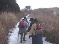 北側斜面の登山道のため残雪が多くある。最後のつらい登りをゆっくりと幕山山頂目指す。幕山山頂も南郷山と同じくススキの原で360度の展望だ、眼下には真鶴半島がよく見える。山頂でしばらく休憩。時雨の山頂を後に幕山山麓の梅の里に下る。梅の里まで降って来た時には薄暗くなってきて梅の花が薄白くほのかな香りを漂わせている。 公園で休憩している間に先に五郎神社に置いてある車に戻り南郷山登山口に置いてあるもう一台の車を取りに行き戻ってきた所で全員と合流する。遅くなってしまったが、せっかく湯河原に来たので温泉に寄って帰ろうと言う事になって日帰り温泉こごめの湯に行く駐車場が一杯で30分ほど待たされる。 温泉に浸かってさっぱりして再び車で海岸道路を小田原目指して走って行くと直ぐに大渋滞!はるか彼方まで海岸線に沿って渋滞しているのが見える。...これでは小田原に何時着くのか?...引き返して箱根経由帰ることにする。雪が少々心配だったが、道路には積もっていなかったので無事箱根ターンパイクを降って箱根口から小田原厚木道路⇒東名高速で東京に戻り各方面に車で送りながら回って帰る。帰宅は夜中の2時を過ぎてしまった。 |