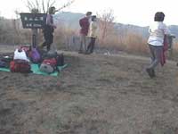 自鑑水⇒幕山⇒鍛冶屋(五郎神社)⇒こごめの湯⇒大観山⇒箱根口⇒厚木⇒海老名SA⇒渋谷⇒ 早春の梅見ハイクとして湯河原の幕山に車2台で向かう箱根口より車の渋滞で湯河原の幕山近くの駐車場に着いたのはで午後になってしまった。予定変更で南郷山から先に行く事にして林道を出来るだけ車で登る、帰りのために車1台を五郎神社の際に置いて再び南郷山登山道まで戻って来る。 全員集合して登山開始みかん畑の広がる山道を登りゴルフ場の縁を通って海抜610mの南郷山山頂に着く広くて見晴らしの良い山頂には30名ほど休憩している。我々も此処で遅い昼食にする。南郷山からはササの茂る一直線の急坂を下り車道に出ると日陰には雪がまだ残っている。再び山に入って抜けると雪が多く残る道路に出てしばらく行くと幕山の道標が有り道路と分かれて幕山に向かって登って行く。太陽が幕山の影に沈んでゆく。
