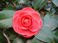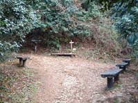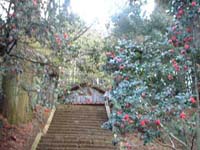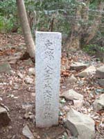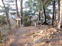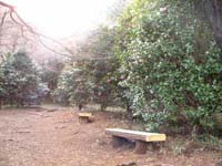 八王子城山頂から小山を越えて行くと一面椿の林となり椿林の中の小高い所に 史跡八王子城天主跡の石碑が建っている。