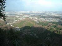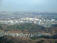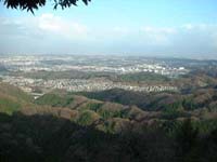 よく整備された登山道を登ってゆくと左手側が開けてきて先ほど見学してきた森林公園が眼下に見渡せる。霞沢団地の後方には新宿の高層ビル群が望める。
