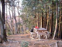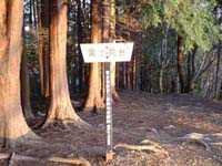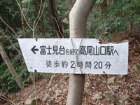 天守跡から尾根筋を行くと富士見台経由高尾山口駅へ2時間20分の標識が出てくる。此処は小仏林道の蛇滝付近から登ってくる登山道との合流地点となっている。
