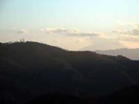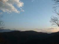 陽が暮れ掛けて来た山道を行き小高い所に富士見平の標識が立っている所に出る。名前のように富士山の方角が開けていて既に陽が山並みの後方に隠れす寸前の所だ。