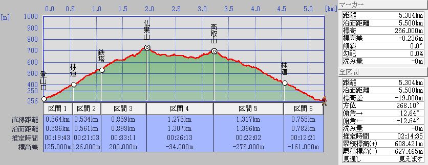 9月21日 コース 仏果山登山口→林道→鉄塔→仏果山→高取山→→仏果山登山口
