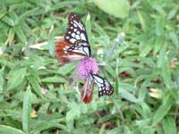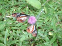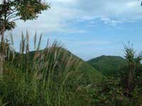 三国山に登りベンチで一休みしているとアサギマダラ蝶が二匹飛んで来て近くのアザミの花の蜜を吸い始めている。先ほどは甘草水の所ではギンボシショウモン蝶が花の蜜を吸いに来ていたのを見ることが出来た。今日は二種類の大きな蝶を見ることが出来てとってもラッキー!! 三国山より生藤山まで行き山頂でしばらく休憩。山頂では初秋の気配を強く感じる。涼風、気温、ススキの穂、木の葉の色...今日は特にリスに逢えた事と蝶も二種類見ることが出来て感動の山歩きとなった。 |