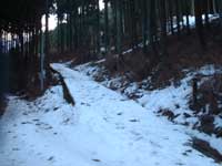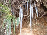 林道の土手には氷柱が |
