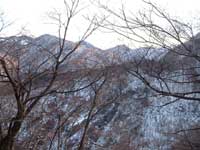 大平駐車場より丹沢三峰を見る |