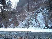 | 三日月橋より凍った滝を見る |