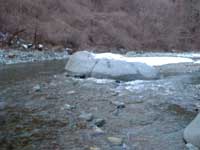 | 早戸川を石伝いに渡る |