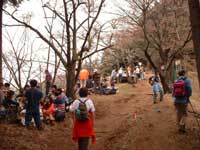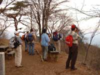 佐野川峠からは緩やかな尾根道となって20分ほど行くと桜の名所「甘草水広場」に出る。やぁー皆さん花見、酒盛り、バーベキューに鍋、天気も良いし花見日和となって楽しんでいる。我々グループも負けずとテーブルに今朝仕入れてきた食料をザックより取り出して並べる...早速ビールで乾杯...花より団子と言った所かな? 甘草水広場でのお花見宴会を十分に楽しんで満足したので、生藤山の手前の三国山まで行く事にする緩やかな尾根筋をいい気分で歩く、明るい森林帯を20分ほど行くと10mほどの丘状の山頂(峠)三国山に出る。ベンチが設置してあり休憩に丁度良い場所となっている。西方面に富士山が薄く霞んで見える。 山里の春に浸り、桜の花咲く尾根(甘草水広場)での宴会、 三国山よりの富士山の遠望、足元に咲く花々、木々の間を吹きぬける春風を身に受けて心身供にリフレッシュする事が出来た感動の山歩きとなった。楽しい一日お疲れ様でした。 |
