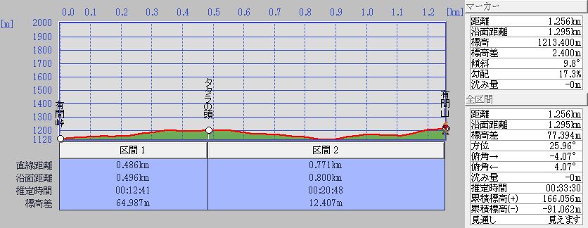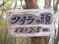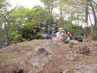 直ぐに尾根筋の登山道に出て明るい広葉樹林帯の中の熊笹が生い茂る登山道を行く。 若葉が芽吹いたばかりで初々しい新緑に包まれた長閑な登山となる。踏み後はハッキリしていて迷う事は無いが登山者が少ないらしい。暫らく行くと 熊笹が刈り取られている休憩に良いピークに出る此処からはタタラノ頭が目前に迫ってくる休憩後急坂を登ってタタラノ頭12313mに到着する。 防火帯の尾根路を数回小さなピークを越えて本日の目標の山、有間山(橋小屋の峰) 1163mに到着する。此処は三叉路になっていて右に降って行くと逆川乗越を経て蕨山方面の登山道で登山者が多くいる。直進コースは鳥首峠を経て 大持山方面に至る。