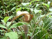 5月18日 大地沢青少年の家→草戸峠→草戸山→草戸峠→大地沢青少年の家 時折り日が射す曇り空の中大地沢青少年センターより草戸山を目指す、 青少年センターの炊事場近くの山の斜面に今年も見事に黄色い花をつけた「ジャケツイバラ」が満開に咲いている。実に見事に咲いている。 青少年センターのキャンプ場を過ぎて行くと右に草戸山登山口の標識があり此処より山道を登ってゆく5分程登ると枝尾根に出て尾根を3分程行くと 県界尾根と合流して急坂を登ると急に視界が開けて草戸峠に出る北側は遮る物が無いため見晴らしは良く、目前の高尾山をゆっくり眺める事が出来る。 草戸峠より一旦下り、再び登りつめると草戸山山頂に出る。草戸山山頂の休憩所で暫らく休憩をしてから再び元来た道を辿る。