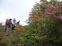 高尾⇒武蔵五日市⇒都民の森⇒丹波⇒柳沢峠→笠取林道三窪高原口→無線塔→ハンゼの頭→十字路→柳沢の頭→十字路→鈴庫山→十字路→ハンゼの頭→笠取林道三窪高原口⇒柳沢峠⇒奥多摩⇒高尾 うす曇の天気の中塩山の三窪高原にツツジを見学に出かける高尾で集合(8時30分)して一路奥多摩方面に向かう。五日市より久し振りに奥多摩周遊道路で都民の森に行きここで休憩する。10分ほどで再び奥多摩周遊道路を進み奥多摩湖の三頭橋を渡って奥多摩街道を左折して柳沢峠に向かう新緑から初夏の色に変わってゆく景色が奥深く続く、途中丹波村を過ぎて柳沢峠に到着。裏の駐車場は満車なので、笠取林道の三窪高原登山口に車を止めて登山開始とする電波塔の管理道路を10分ほど行くと三窪高原の一角に出る。此処からは感動の山歩きとなる