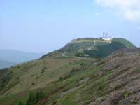 松本⇒浅間温泉⇒美鈴湖⇒武石峠⇒美ヶ原高原→天狗の露地→王ケ頭→美ヶ原高原⇒思い出の丘⇒美鈴湖⇒松本 松本より美ヶ原高原を目指す。駅前通りを県の森の手前を左に折れて浅間温泉に入って美ヶ原へと急な坂道をどんどん登って行くと美鈴湖の手前で広い道路と合流して美鈴湖を右手に見ながら美ヶ原林道を行く、途中レンゲツツジが群生している所が有り緑の中に朱色で塗りつぶされている。さらに登って行くと森林限界を過ぎて見晴らしの良いスカイラインとなり最高の展望がになる。しかし遠くの山はガスで確認できない。武石峰を過ぎ正面に電波塔が多く建っている王ケ頭が間近かに見えてくる。美ヶ原高原林道の終点の駐車場に車を止めて登山開始とする。