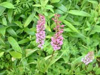 高原ムードが漂う麦草ヒュッテを後に、麦草峠の自然園を一巡りしてくる。此処には色々な種類の高山植物が咲いていて登山開始前の貴重な一時となる。生憎天気が悪く太陽の光がないので、花の輝きが少々欠けるが其の分瑞々しさが出ている。珍しい高山植物が多く見られる園内を一巡りしてから丸山目指して登山道を登り始める。 シラビソの原生林の中を登って行くと足元には、ゴゼンタイバナの群生と、オサバグサが登山道に沿って咲いている。ピークを過ぎて僅かに降ってから再び丸山山頂目指して原生林の中を登って行くと次第に傾斜が急な登山道になる。天気は相変わらず悪いが雨にならないだけ幸いしている。頭上が次第に明るくなってきて丸山山頂に出る。山頂からは霧で周りの山は見えないが雨の心配はなさそうなので此処でゆっくりと昼食にする。