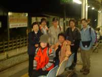 丁度茶店の主人が店を閉めて里に引き上げる所だった(休日は毎日登って来るらしい)陽もだいぶ低くなってきたので、陣馬山は省略して途中の奈良子峠より姫谷温泉に下る。明王峠より約10分、奈良子峠の標識が有り、此処で縦走路と分かれて約50分最終目的の温泉(姫谷)に到着、温泉に浸かり疲れた体を癒し、ビールで喉を潤し、大変満足感を味わえる。後はバスで藤野駅まで送ってもらい各人帰宅の途に付く。皆さん長い道のりお疲れ様でした。