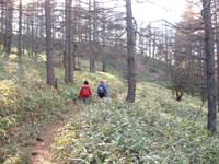佐久⇒車坂峠→槍が鞘→トーミの頭→黒斑山→蛇骨岳→裏コース→車坂峠⇒佐久 佐久の山荘を8時出発、途中のコンビニで昼食のインスタント食品など購入して一路、車坂峠を目指す。天気は快晴だが浅間山の山頂付近には雲が懸かっている。山頂は見えないが晴れることを期待しながら、チェリーパークラインに入って、どんどん登って行く。唐松や白樺林の中を右、左とカーブの連続で一機に標高1968mの車坂峠まで登ってしまう。峠の高峰高原ホテルに寄って軽い朝食を採る。コーヒーと焼きたてのクロワッサンが特に美味しい。コーヒーを飲みながら目前に展開する展望を楽しめる(奥秩父、富士山、八ヶ岳...)