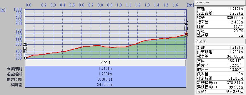 景色と食事を充分楽しんでから辺室山山頂を後にして、のんびりと降る、山頂より約1時間土山峠に戻る。