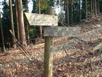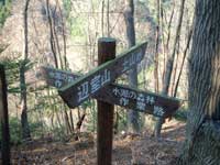 明るい雑木林の尾根道を登って行く、この尾根の登山道には約100m毎に標識が設置してあり、これなら道を間違える事はありえない、踏み後もはっきりしている登山道なので安心して歩ける。南側の斜面は檜の植林地帯で尾根道に沿って金網が張りめぐされている。