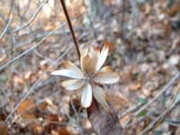 好天に恵まれた祭日(天皇誕生日)前回強風で断念した辺室山へ再度アタック。今回は途中のスーパーでHさんと待ち合わせて、スーパーで食料を買い求めて(朝食と昼食分)車の中で遅い朝食を取り、宮が瀬に向かう、途中の都井原の駐車場に寄って1台の車を置いて土山峠を目指す。幸い土山峠の狭い駐車スペースが空いていたので駐車して登山準備開始。道路際の急な階段状の登山道を登り始めると直ぐに尾根に出て後方の宮ケ瀬湖が眺められる明るい尾根道をどんどんと登って行く。