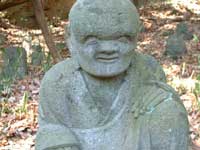 鐘撞堂山330mの山頂には大勢のハイカーが山頂での展望、まだ昼食には早いのでお茶などを飲みながら休憩ををしている。眼下には国道14号線、寄居の街並み、荒川の対岸の鉢形山城址、後方には釜伏山などが一望に見渡せる。鐘撞堂山山頂より羅漢山に続くハイキング道があり1時間ほどの行程だが、登って来た登山道を車を停めてある鐘撞堂山登山口に引返す。 寄居⇒国道140号線⇒少林寺入口⇒少林寺→羅漢山山頂→少林寺 寄居から国道140号線を長瀞方面に向かい荒川に架ける橋より繋がる立体道路を過ぎた所の信号の有る所を右折して少林寺に向かう、畑の中の狭い路を山の端に向かって行くと少林寺と書かれた大きな石碑が建っている、さらに進むと少林寺に突き当たり右手の広い駐車場に車を停めて本堂に行くと丁度読経が聞こえてくる。本堂左際より羅漢山山頂までジグザグに登山道が出来ていて、登山道の山側に丁度目の高さに羅漢像が並んでいる