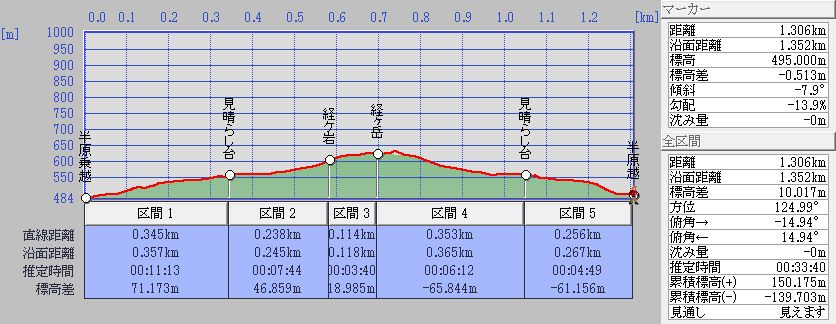 半原乗越→見晴台→経が岩→経ヶ岳山頂