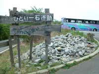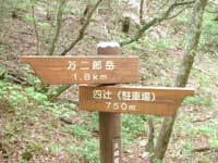登山準備をしている直ぐ後ろで天城山を巡回して帰る支度をしている人(静岡県の自然保護関係者?)と準備しながら色々と情報(天城山、南アルプス)のを聞く。登山口に向かう駐車場の際に「ひとり一石運動」の看板の所に石が山積みにしてある。登山道の整備用なので、我々も一石運動に協力する。12時登山開始、登山口より樹林帯の中暫く行くと、十字路経由万三郎岳の分岐点があるが、多くの登山者(ハイカー)等による荒廃で通行禁止となっている。 十字路の分岐より明るい広葉樹林帯の中、沢状になっている際に出来ている登山道を緩やかに登ってゆく、ヒメシャラ、ドウダンツツジ、ヤマアジサイ等の樹木が多くある中ピンク色の花を咲かせているアマギツツジが一際目立つ。駐車場より眺めた万二郎岳に二箇所大きく山崩れした所が見えた、その内の一つの左側のガレ場幅約20mを横切る。 次第に登山道が急になり万二郎岳山頂まで530mの案内標識がある。ガレ場を通過した頃から降ってくる登山者が多くなってくる。明るい新緑の中、点々とアマギツツジのピンク色の花が変化ある模様をつけている。苔類の緑の床には舞い散った花で、賑わいを見せている。枝先の花、道端に舞い散った花と眺めながら登って行ける。