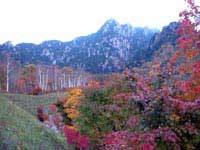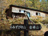 登るに連れて登山者が多くなってきて団体の登山者が降りてくる、路を開けて待機しながら降ってくる団体さんの後方の数人が「何処に行くのですか」?と聞かれる 変なこと聞くなと 話しを始めると、瑞牆山山頂から降りて来たのではなく間違えて黒森方面に登ってしまい途中で路が不明となり引き換えしてきた事がわかった。我々と数名の登山者も間違った方向に登ってしまう所だった。此処からは団体さんも加わり賑やかな登山となる。 鑪岩が空を突くように竣立している、多くの登山者が記念撮影をしているが余にも高さが高いため鑪岩の全体を写す事ができない、暫らく登ると鑪岩の後方に瑞牆山のシンボル大ヤスリ岩が見えてくる、大ヤスリの岩峰と瑞牆山との間を更に登り大ヤスリ岩の頭部が見える様になると黒森分岐の標識が建つ鞍部に出て北側を右に回りこんで僅かに登ると標高2230mの瑞牆山山頂に出る。(11:47) 瑞牆山山頂で撮影を済ませてザックを降ろせる場所を探して昼食にする。次第に登山者が登ってきて瑞牆山山頂は登山者で賑わいを見せる。山頂からの展望は雲が広がってきて朝のうち見えていた八ヶ岳や金峰山は雲に隠れている富士山も同様で見る事ができない。昼食や撮影で1時間ほど山頂で過ごし登山者の合間を見て降ることにする、山頂直下の素木一本を伝っての登り降りの所で少々通過に時間を取られる、黒森の分岐から瑞牆山の隣に聳えている岩峰に踏み跡を頼りに入ってみると数名の登山者が昼食を楽しんでいる、岩峰に登るのは無理があるので止める、隣の瑞牆山山頂の登山者が小さく岩峰の上に見える。 (13:05)黒森の分岐まで戻り下山始めると団体さんが昼食を済ませて下山始めている、後に着いてゆっくり下山しても良いのだが、脇道を下り、割込ませて貰って団体さんを抜いて速いペースで降る、後は登ってくる登山者と10名ほどすれ違っただけで登る時とは大違い14時丁度天鳥川に降る、55分で降ってしまう、天鳥川を渡り富士見平小屋目指して飯盛山の斜面を登っててゆく。疲れが出てきて歩行ペースがスローダウン。 今回最後の苦しい坂を登りつめて明るい富士見平の辿り着く(14:36)小屋の前で一息入れて再び登山道を下る、林道の分岐で登山道から分かれてS字にカーブして降る富士見平林道を選んで降る事にする。再度林道よりの瑞牆山を眺めて降る。秋色に染まった林の中の林道を楽しみながらゆっくりと下る、途中の瑞牆山の展望所からは山頂付近が霧で隠れた瑞牆山と裾の方で紅葉した山容が素晴らしい景観となっている。 瑞牆山山の紅葉を暫し眺めて秋一色の中に浸り心身共に癒される気持ちになる林道の際には遅咲きの菊類が所々で咲いている。 15時23分登山道を横切る、登山道に入らず再び林道を廻って降る、唐松、シラビソ、白樺、広葉樹と色々の木の特色があり山の色合を深めている、殆どの登山者は直線に出来ている登山道を歩いてゆくが片道は林道を利用すると登山道では見られない光景を見る事ができる。 15時53分駐車場の有る林道のゲートに戻る、団体さんを乗せてきたバスが待機している、車に戻り帰る準備をしていると団体さんの先頭の数名が下山してくる。瑞牆山山頂より見えた大きな駐車場が近くにある様なので車で付近を廻って見ることにする、瑞牆山荘の前を通過して黒森方面に行くと右手に新しい立派な道路が出来ていて入って行くと美しい白樺林の中を走ると瑞牆山山頂より見えた施設「みずがきの森」が有る 広い駐車場があり、レストハウスもありキャンプやバーべキューなど楽しめる施設となっているようだ、ハウスにはお土産も販売していて軽食も可能のようだ。此処からの瑞牆山の眺めは最高に良く付近の紅葉や白樺林のコントラストがいっそう引き立て役となっている。此処は全国植樹祭指定地となっていて天皇皇后両陛下のお手植えの木も有る。瑞牆山の眺めは此処みずがきの森が特等席だ。思いがけなく、みずがきの森で再び瑞牆山の姿を堪能し感動の山の余韻を残しつつ帰路辿る、瑞牆山荘の前を通過して金山平の小高い白樺林の中にある木暮理太郎の碑を見てくる。