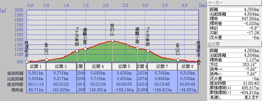 1379m菰釣山山頂に立って見ると正面、春霞の中雪化粧の富士山が見える、多少期待をして登ってきたので富士山の姿に感動する。早速昼食の準備 お湯を沸かしインスタントの赤飯を作っている間に無線交信の準備...JA1OAO局よりの呼び出しがありハンディ機で応答する。七面山と菰釣山の間で2時間ほど交信 用意してきたアンテナ、機器のテストが出来る。菰釣山山頂は意外と登山者が少なくて、静かな山頂で2時間ほど楽しむ事が出来る、富士山も次第に霞の中に姿を消してしまう。15時10分登山者が居なくなった菰釣山を後にして下山路を辿る。 時間と体力があれば城が尾峠経由下る事も考えていたのだが今回は往路を戻ることにする。再び花の群生するブナ沢を下り、西沢林道の車に戻る(16:10)感動の山歩きが出来る菰釣山の魅力。1.程よい時間で山頂に立てる。 2.山頂からの展望も素晴らしく良い。 3.城が尾峠を周遊するコースが有る 4.登山道は全て明るいブナ林が多い。 5.ブナ沢には多くの花が群生している。好条件が揃っているが交通の便が悪いのが欠点だが、マイカー利用者には最高の登山が出来る。 |