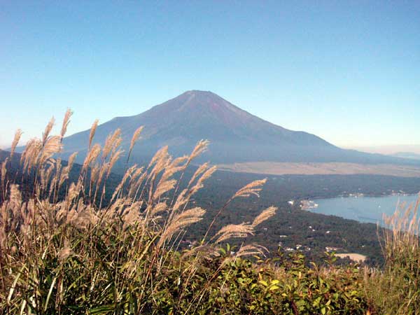 | 相模原6:10⇒三国峠8:00→鉄砲木ノ頭8:30→三国峠9:25→三国山9:50→ブナ坂峠10:00→楢ノ木山10:20→ブナ坂峠10:40→三国山10:50→三国峠11:10⇒明神峠11:30⇒相模原13:30 夏の暑い陽射しも遠ざかり涼風吹き渡る山中湖の西側に連なる三国山山稜の三国峠に向かう。相模原を6時10分出発し、道志道を通過して山伏トンネルを抜けると正面に大きな富士山が見えてくる。今日は雲一つ無い青空で富士山の右後方には南アルプスの山波もはっきり見える。 山中湖(平野)より三国峠に向かう途中で展望の良い所が有りカメラマンが数人富士山の写真を撮っている。車を停めて素晴らしい風景をカメラに収めてくる、此処は富士山のビューポイントと成っている様だ。三国峠着9時20分登山靴に履き替えて登山準備。 鉄砲木の頭登山口の標識に従って樹林のトンネルの中山頂を目指す。10分ほど行くと樹林帯から抜けてススキ原に変わり明るい登山道になる。此処からは山頂までススキ原で左後方に山中湖と富士山が近くに見える。 登山道は登るにつれて細く溝状になって歩きにくくなる。左脇に幅広い登山道が出来ているので新しい登山道を行く。足元にはマツムシソウやキクなどが一面に咲いていて目を楽しませてくれる。苦しい登りだが富士山の眺めと足元の花に大いに癒されて楽しい登山が出来る。8時30分山頂一面が砂礫の鉄砲木の頭に到着山頂の東側はススキが生い茂り展望はあまり良くないが西側は遮るものが無く好天気に恵まれて素晴らしい展望が広がっている。
