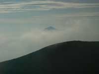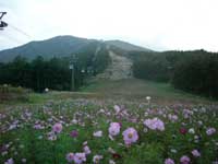 15時10分安達太良山山頂に辿りつく、(所要時間60分)意外と早い時間に到着、これで最終のゴンドラに乗れるので一安心できる。山頂の岩に登り360度の展望を満喫する。山頂からの展望は良く西側の磐梯山、北方向には鉄山と後方に東吾妻山が望める。素早く写真を撮り岩山を降りる。斜光を浴びながら数名の登山者が各方面に去ってゆく後姿を見送りながら岩場の斜面をロープウエィ駅目指して降る。 陽が山の影に沈みかける夕暮れの一時、登山者の影も無くなり静寂の山となる。振り返りながら変化する安達太良山を眺めては降る。急いで降って来たので最終には30分ほど余裕があるので薬師岳展望台を回ってゴンドラ駅に16時10分戻る。往復ロープウエィを利用出来た事と幸運にも天候に恵まれて短い時間で素晴らしい展望を大変楽な登山で体験できる。用意していた昼食のおにぎり等は山頂で食べる時間が無かったのでロープウエィで降りてきたコスモス畑の前で遅い昼食にする。 |