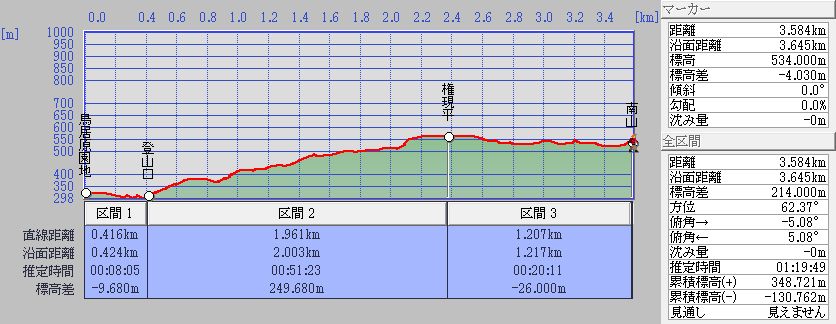 鉄塔を過ぎて緩やかな尾根道をしばらく行くと左手に木立の合間より奥秩父の山並みが見え、さらに後方には真っ白な山も見える。樹林帯に入って急登になり登り切ると南山園地(権現平)に到着。休憩舎を通過して南側の開けた展望所でしばし休憩。早速JA1OAO局と無線交信で雪の南山の状況を伝える。単独登山でも山頂からの交信で登山の楽しみが倍増する。交信中に一人三脚を担いで写真を撮りに長竹方面より登って来た。一時間ほど前は丹沢の山並みが確認できたが今は雲で主脈は覆われている。もう少し早く来れば丹沢をバックに素晴らしい写真が撮れたのに、と残念がっている。 南山園地は標高569mで南山より25m高い。南山に向かって平坦な尾根を行く。途中まで先ほどの写真を撮りに登ってきた人の足跡を辿って尾根を歩いて行くと7人ほどの女性のグループとすれ違い、さらに行くと今度はハンター5人と出逢う。熊でも出るのですかー と声をかけながら通過する。南山園地からは一人の足跡を辿っていたが此処からは多くの靴後で踏み均された雪道となる。山火事と台風の影響で得意な姿の山頂となった南山が目前に見えてくる。南の斜面は日当りが良く雪が解けて地肌が露出している所が目立ってくる。 南山の最後の斜面を一気に登り標高544mの山頂にたどり着く。再びJA1OAOの局長さんと無線交信。10分ほど山頂で休憩ご元来た路を引き返す。次第に雲が広がってきて青空が無くなって行く。南山園地まで戻ると南山山頂で出会った登山者が一名展望所で休憩している。お先にと声おかけて休憩舎の所に来ると途中ですれ違った7人ほどの女性グループが休憩舎の中で食事を楽しんでいる。後は登ってきた足跡を辿り鳥居原園地までスリップに注意しながら降る。鳥居原園地に12時40分戻る。 |
