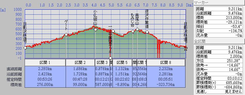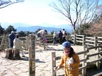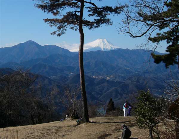 城山山頂で充分休憩できたので高尾山に向かう。 此処からは高尾山の手前の紅葉台までダラダラ降って行くのでスリップに注意する。足元は凍っていて 日の当たる所は霜が溶け出して所々泥濘の道となっている。一丁平の休憩舎前からは富士山が再び観ることが出来る (富士山の見える方角のみ植林の樹木を伐採してある)次第にハイカーが多くなって来る。ハイカーの殆どが高尾山から 城山に向かうコースで城山から高尾山に向かう人は少ない。高尾山のケーブルカーを利用しての登山に気安さがあるようだ。 紅葉台の登りの途中で再び富士山の展望が開ける。 日当りが良く展望も良いので多くのハイカーが休憩している。真っ白な富士山を鮮明に見ることが出来るのはこの時期で、桜と富士山を観る事は稀有のようだ。紅葉台を超えて高尾山の石段を登り標高599mの高尾山山頂に出る。 展望台からは再び富士山の展望を楽しめる。ケーブルカーで登ってきた観光客も多く富士山の眺めに歓声を漏らしている。山頂を廻って紅葉台に戻り、 紅葉台北側の林道を日影沢に降る。今回は積雪が無しで歩き易く12時に駐車した日影沢林道に戻れて感動の山歩きが出来た。 |