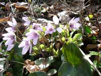 桜尾根登山口8:20→桜尾根山頂9:00→灯台コース分岐10:00→→角田山山頂10:06→三望平10:20→五ケ峠分岐10:25→角田岬灯台11:10→桜尾根登山口11:30 念願の角田山花見登山、やや風が強く気温が低いが天気が良いので桜尾根から8時20分登り始める。事前の調査で8コースある登山コースのなかで最も雪割草が多く咲いている事が分かる。桜尾根コースはガイドブックなどには掲載されていないが、多くの登山者が登って行くので登山口は直に分かった。既に多くの車が停めてあったが幸いに桜尾根登山口の近くに駐車できた。 10分ほど登ると右手後方に角田岬灯台が見えてくる。桜尾根は灯台コースのすぐ左隣の尾根で、倒木が多く砂地の急斜面なので息が弾む。登山口の標識も無いが登山道ははっきり付いているし天候も良し、多くの登山者が登っているので路に迷う心配は無い。周りを良く見ると雪割草が咲いている、登るに連れて足元一面に雪割草、カタクリ、アズマイチゲ、ショウジョウバカマ等の花が咲き乱れている。