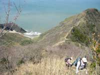 灯台コ−スを下山途中登ってくる多くの人と行き交う、雑木林が途切れた展望の利く見晴所からゴツゴツしている岩場の急な狭い路となり所々で交互通行となる。桜尾根より数は少ないが雪割草も咲いている。気が付くと写真を撮りすぎてメモリーが無くなる、予備を持っていないので数枚消去して最低限の撮影になってしまった。2年前天候の影響で登山を断念した悔しい思いが今日の登山で一転する、予想をはるかに超える花の多さに改めて角田山の素晴らしさに感動、感動の山歩きが出来た。感動の余韻をいつまでも残し帰路を辿る。 2004年7月16日〜17日 弥彦山・角田山 |