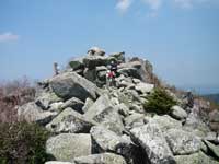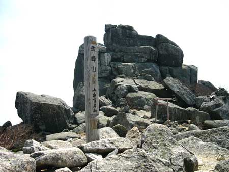岩場の急斜面を降り樹林帯に入って緩やかに降ってゆく、鉄山との鞍部を通過して鉄山の登り道に取り掛かる、シラビソの樹林帯の中に鉄山の分岐があり、巻き道を進む、次第にシラビソの樹林から石楠花やハイマツに変り空が大きく開けて金峰山山頂からの稜線に出る。12時4分。青空に白い雲の良い天気だが遠望はなく富士山の姿は影も見えない、目前に瑞牆山の特異な形が見えるが八ヶ岳や浅間山などの影も無し。広い稜線を金峰山山頂目指す。 金峰山山頂は大きな岩が重なり合っているので岩から岩へと飛び越えて行き岩のトンネルを潜ると標高2595mの金峰山山頂に到着、目の前には大きな岩の重なっている金峰山のシンボル五丈岩が聳え立っている。金峰山山頂で記念写真を撮ってから山頂と五条丈岩の間に降り、北側の瑞牆山を目前に見ながら昼食休憩にする。食後はお湯を沸かしてコーヒータイムで至福のひと時を過ごす。 山者が登って来たが山頂には登山者が10名ほどで、既に多くの登山者は山頂を降っている。我々も充分休息も出来たので金峰山山頂を後に引き返す。昼食を摂っている間、数人の登山者が登って来たが山頂には登山者が10名ほどで、既に多くの登山者は山頂を降っている。我々も充分休息も出来たので金峰山山頂を後に引き返す。 13時50分、我々二人だけとなった金峰山山頂を後に大弛峠を目指して降り始める、進行方向には越えてきた朝日岳、その後方には国師岳、その左後方には甲武信ヶ岳を中心に左に三宝山、右に木賊山の三つのピークが見える。稜線を右に折れて鉄山に向う。行きは鉄山の巻き道を利用したので帰りは鉄山の山頂を通って降ることにする。鉄山の分岐標識の手前で赤いテープと踏み跡のある分岐を見つけて鉄山山頂に上がる鉄山山頂はシラビソの樹林で視界は悪いが僅かの間から金峰山山頂の五丈岩が望める。山頂から僅か降ると巻き道との分岐点でHさんが待っていた。 鉄山分岐から5分ほど降った所(鞍部)でベンチがあり20分ほど休憩する。充分休んだので朝日岳の登りに取り掛かる、緩やかな樹林帯の登り道を行き次第に朝日岳山頂が近づき山頂を見上げる様になると岩場の急斜面となり、朝日岳山頂目指してジグザグに登り、金峰山の眺めの良い山頂に辿り着く15時42分、此処で小休止。 朝日岳山頂からは尾根筋の樹林帯の中緩やかな降りで朝日峠を過ぎて僅かに3っつ程小さなピークを越えて大弛峠に戻る。16時40分 大弛峠の南側の林道に鹿が4頭出迎えに現れる、人間に馴れているのか至近距離様子を伺っている。感動の山歩きを終えて、大弛峠は各方面から降ってきた登山者がいる、広島から来たご夫婦は今日は車に泊まり明日は国師岳登山、甲武信ヶ岳まで往復して来た長野県の人は温泉に向う、我々も大弛峠を後に帰路を辿る。 1975年4月20日〜21日 金峰山登山 1972年8月4日〜6日 金峰山登山 |