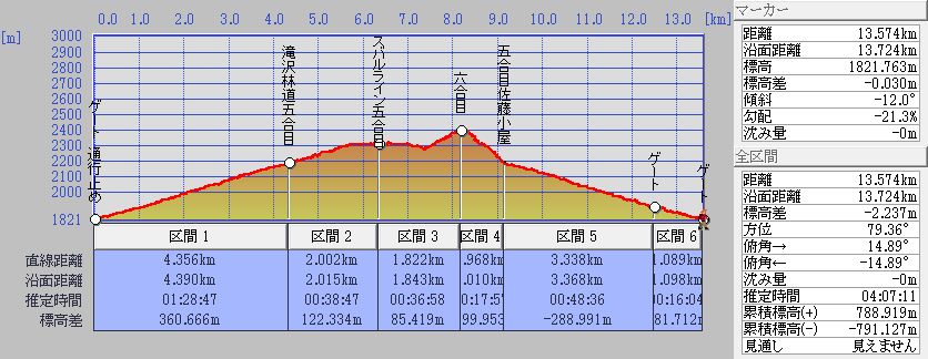 佐藤小屋からスバルライン山頂の5合目まではほとんど水平で時折車が通行する車道になっている、佐藤小屋から山頂に向う登山道もあり。スバルライン5合目に向う途中に山頂からの登山道と合流していて、此処からは今までの静かさと激変すし蟻の行列に加わる事になる。
