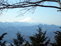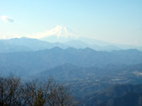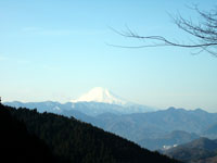 昨日の雨が上がって太陽の光で起こされる。素早くザックに荷物を詰め込んで家を出る。近くの経ヶ岳にでも行こうと丹沢山を見ると雪化粧しているのが霞んで見える。上空一面青空なので富士山の見える生藤山に進路を変える。高尾経由和田峠を過ぎた富士山のビューポイントからは予想どうり青空に白く突き出た富士山が望める。鎌沢から登里まで車で入っての最短距離で生藤山登山開始する